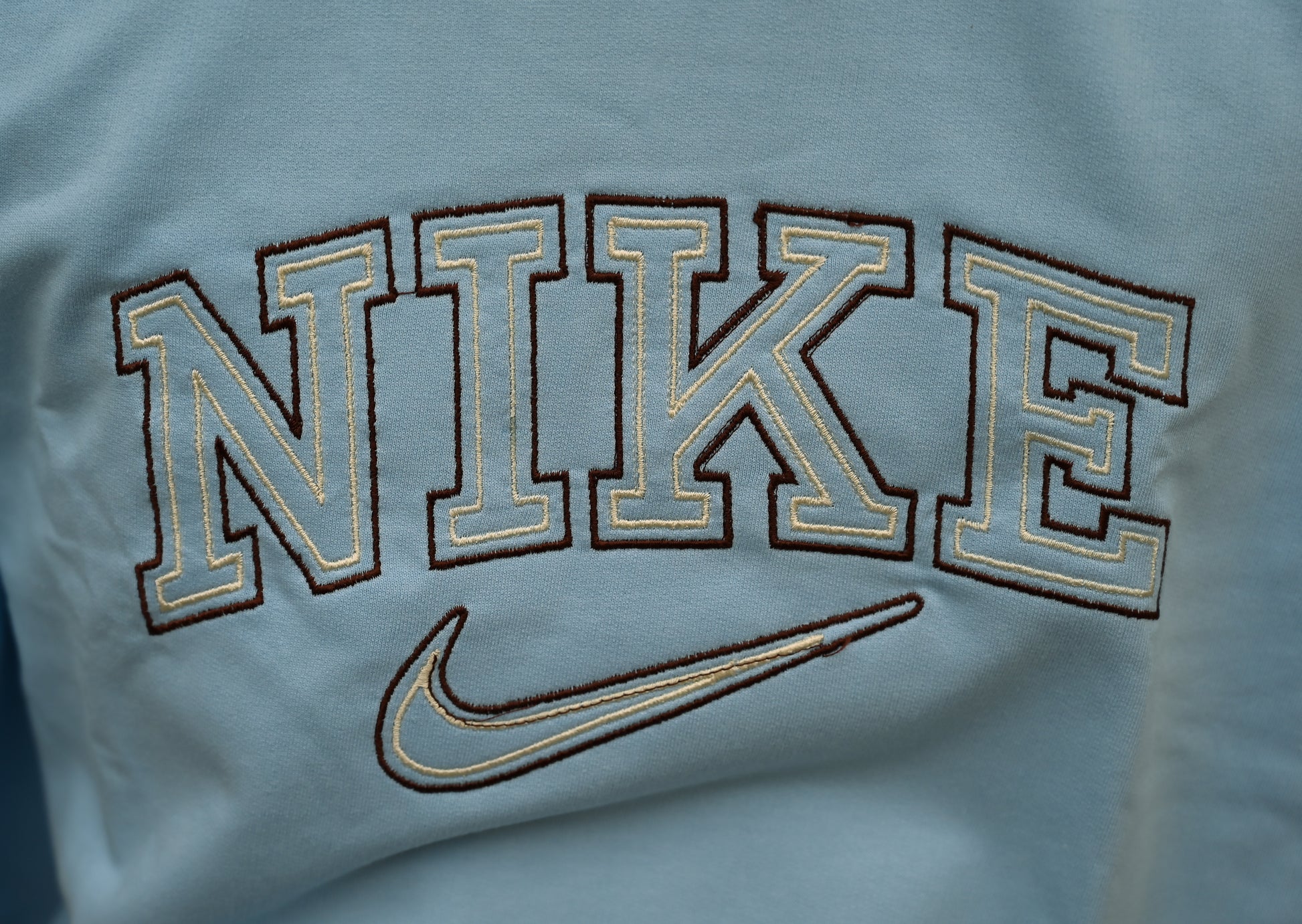 High-contrast embroidered “NIKE” text with swoosh logo